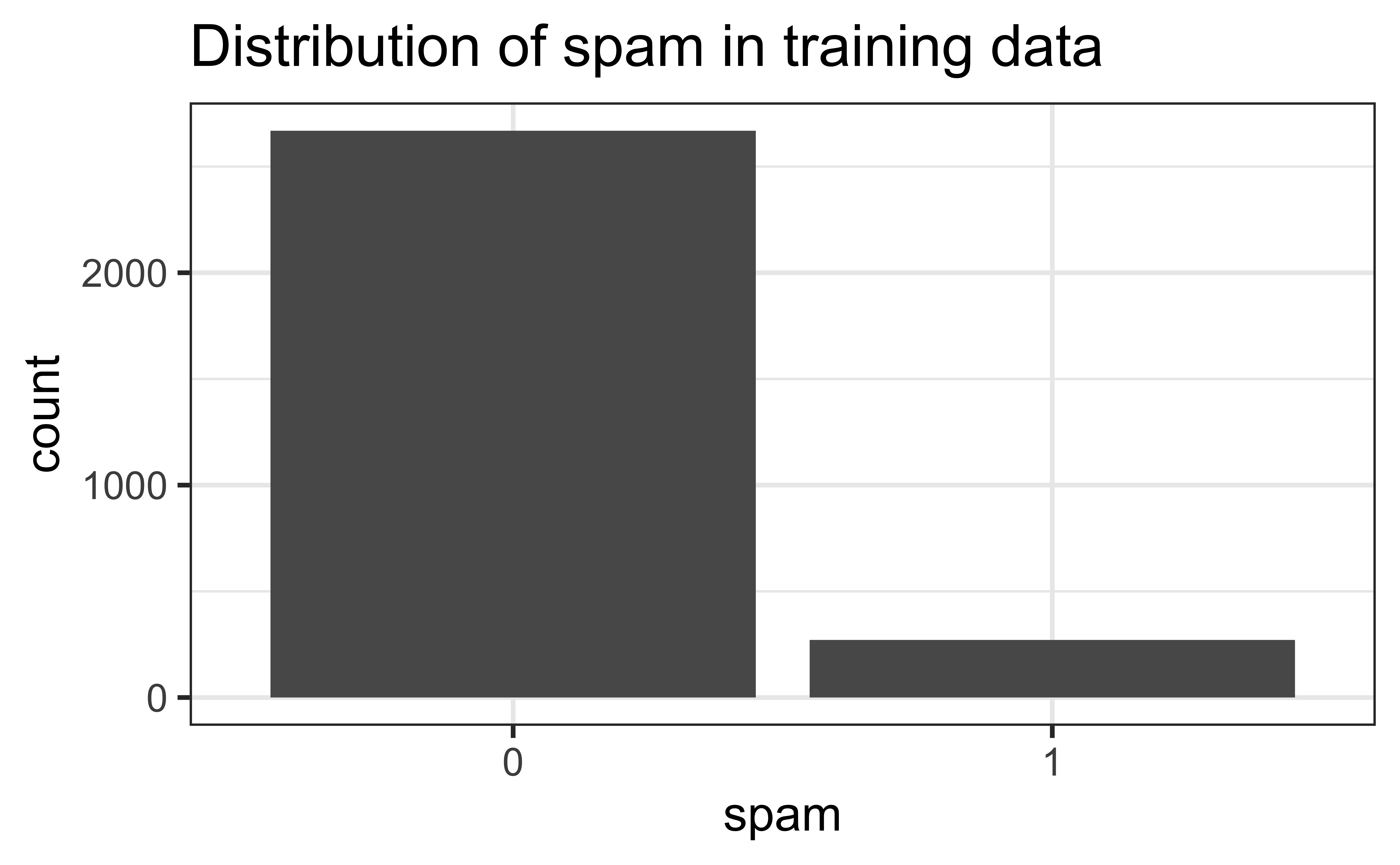 email_test <- testing(email_split)The sample is unbalanced with respect to spam.